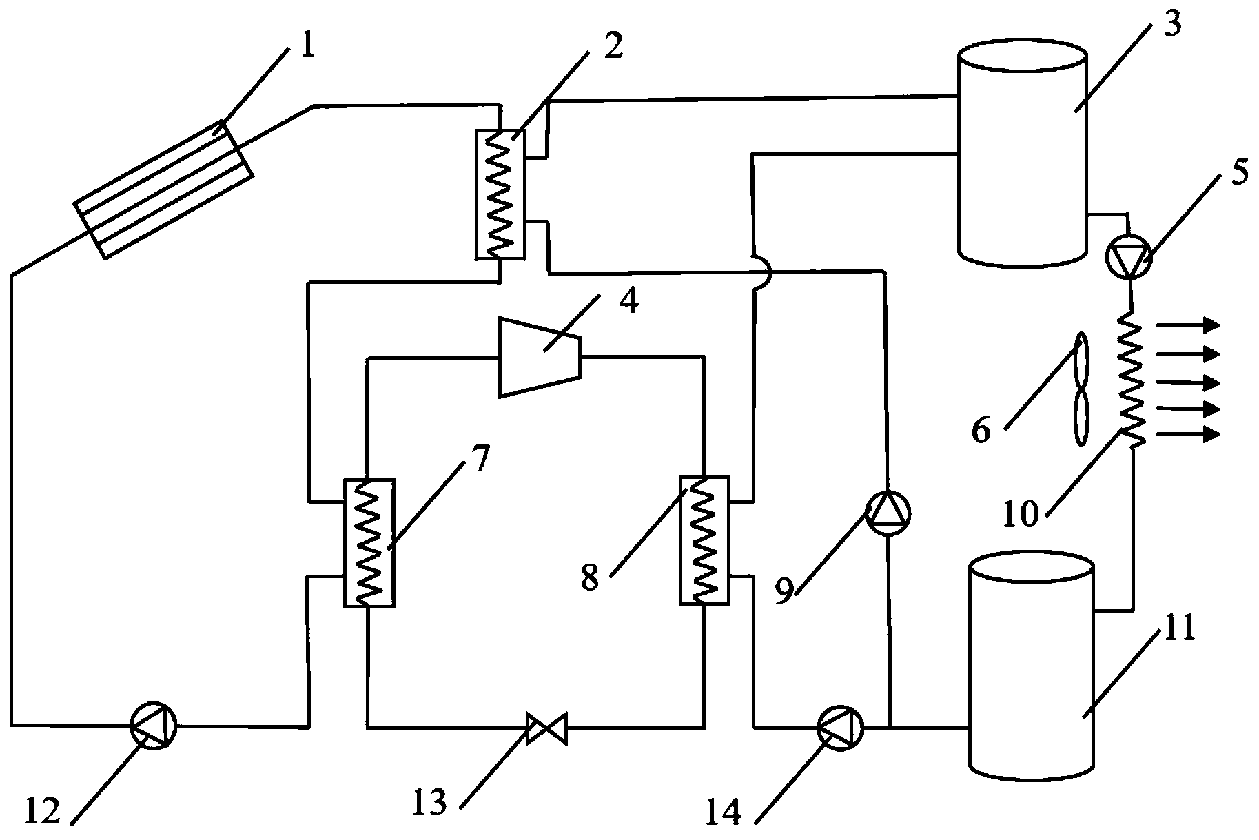 本发明提供了一种基于太阳能的联合干燥系统,本系统可以提高能量利用效率,并实现不同太阳能辐照条件下干燥流程的稳定运行。