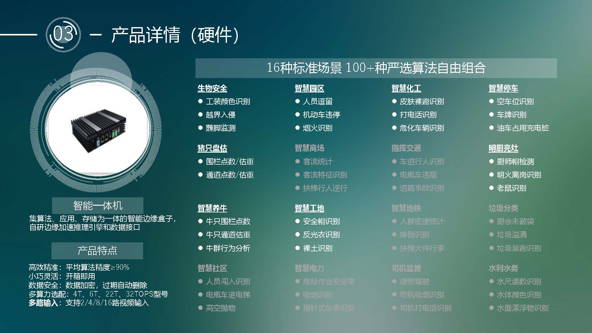 通过云侧算法识别多情景多类型算法的综合方案,对于前端摄像头的性能要求降到了最低,也便于大规模、多路摄像头、多类型识别算法的聚类应用