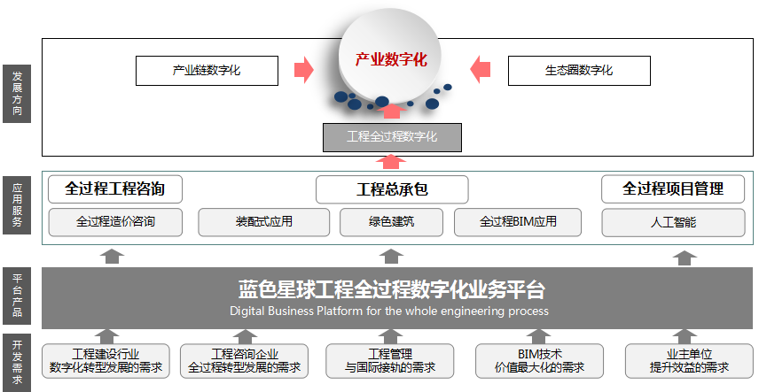 平台总体定位是:支撑工程全过程的数字化业务运行。
