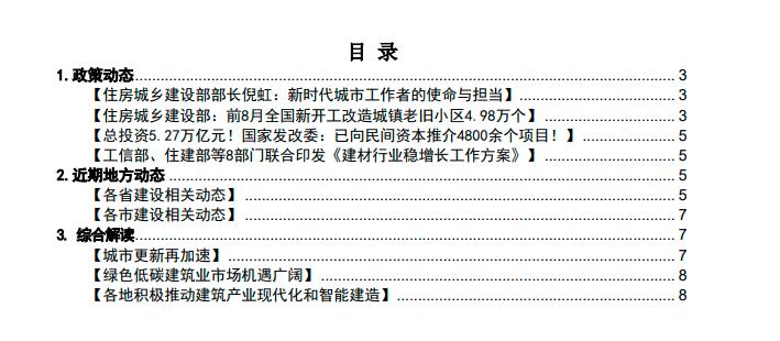 2)山西省住建厅:山西省住房和城乡建设厅日前印发《推动建筑业工业化、数字化、绿色化发展的实施方案》(以下简称《方案》),明确工作目标:到2025年,培育数字化转型企业10家,全省在建项目“智慧工地”创建活动覆盖率超过20%,绿色建筑占城镇新建建筑比例达到100%,新开工装配式建筑占新建建筑面积比例达到30%。并确定了9项重点任务。
