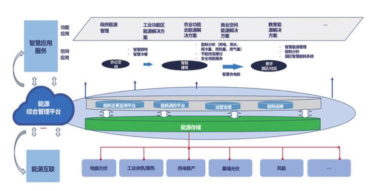 2)面向能源的需求端——打造能源监控和运营平台。以“能耗全景监测”为核心,采用大数据、云计算、AI、区块链等互联网最新技术,搭建实时化、信息化智能监测系统,解决碳管理、能耗监测等核心难点,并通过精准、高效的数字化管理,实现区域内的决策分析和督办协同,进而为客户提供低碳能源服务。实现对分布式光伏、储能、空调、供暖、制冷、照明、给排水等状态的信息采集、环境感知与系统控制,通过AI算法挖掘和智能决策,优化客户侧能源系统运行策略,保障能源供给,降低用能成本,履行双碳承诺。并面向建筑楼宇、工业企业及园区、社区、家庭等CPS用能场景,实现能源规划、控制、监测、分析、运维、管理、交易等功能,实现需求传导和数据贯通。
