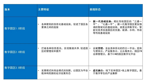 我们认为:产业园区的数字化转型也是一个逐步的过程,伴缩着数字技术的不断发展,产业园区数字化转型大概要经历三个阶段:数字园区1.0是通过新一代信息化基础设施解决园区各要素的链接效率;数字园区2.0是通过数据共享提升园区的管理效率,数字园区3.0则是数字思维带来的园区商业和运营模式重构。
