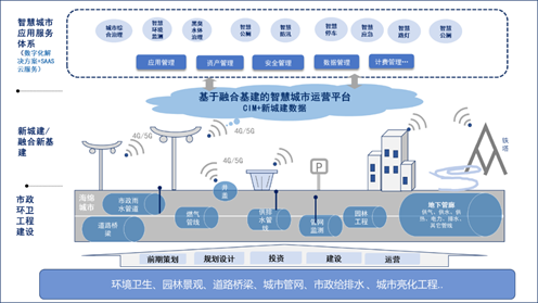 应用CIM及大数据、云计算、物联网、传感设备等技术和传统的市政设施融合形成融合基建,搭建新城建体系。如:智慧管廊、数字城市管网、数字桥梁、智慧交通。