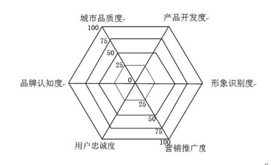 如何实现城市品牌的可检测、可追踪、可量化,是品牌管理的重要前提条件。借鉴奥美公司的“360度品牌管家”理论,结合城市品牌的特殊性,我们创新的提出了“城市文化品牌的360度扫描”。在城市品牌的打造实施过程中,可以采取“试卷调查”的方式:从城市品质度、产品开发度、品牌认知度、形象识别度、用户忠诚度、营销推广度六个指标对城市品牌进行扫描检测。其中每个指标满分为100分,总分为600分。