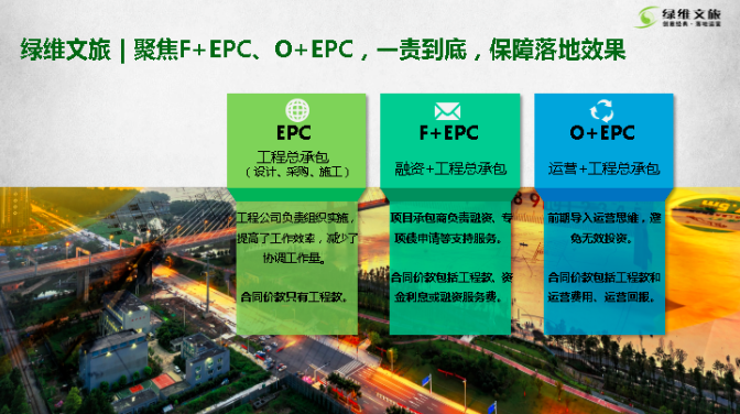 绿维文旅EPCO模式风险承担结构大大降低了投资人的风险,实现了投资的保障,能够达到效率的最大化。绿维文旅聚焦EPC、F+EPC、0+EPC,一责到底,保障落地效果。