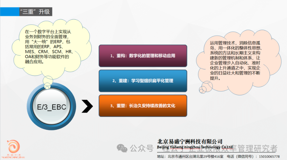 企业数字化是企业发展过程中的必修课,也是一门企业需终生研究的课题。在转型过程中必须意识到要从员工的行为方式和管理的思维方式上进行引导,更需建立长期主义的,从高、中和基层管理干部开始的持续改善文化。
