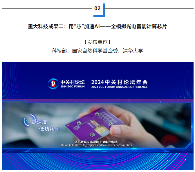 AI时代,用“光”替代“电”作为信息处理载体的光计算技术已经成为人工智能芯片的重要技术核心。清华大学戴琼海团队突破传统芯片架构中的物理瓶颈,研制出国际首个全模拟光电智能计算芯片。该芯片具有高速度、低功耗的特点,在智能视觉目标识别任务方面的算力是目前高性能商用芯片的3000余倍,能效提升400万倍,该成果开创了全新计算技术时代,有望成为人工智能发展的有力引擎。