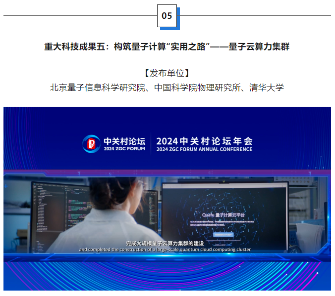 北京量子信息科学研究院联合中国科学院物理研究所、清华大学等团队完成大规模量子云算力集群的建设,实现了五块百比特规模量子芯片算力资源和经典算力资源的深度融合,总物理比特数达到590,综合指标进入国际第一梯队。