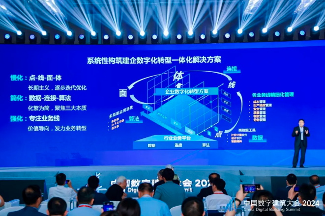 基于对数字化本质和建筑业本质的阐释,袁正刚强调,企业的数字化,要以项目为中心,建立数据驱动的系统化管理和决策体系,打造数字化精益工地。目前,建筑业数字化在核心的设计阶段、施工阶段已经取得了阶段性成果,并打造了行业级数字化业务平台和行业AI大模型,这是建筑业走出关键决策区、奠定“未来存在的根基”,跨入新发展阶段的坚实后盾。