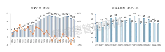 图3为我们的水泥用量和开竣工面积,水泥用量在2018年、2019年达到顶峰,大概24亿吨,开竣工面积也是从50亿平方米到40亿平方米,有较大下滑。虽然建筑业整体的产值还能增大,但实际开工量已显著下滑,建筑业整体的拐点已经到来。