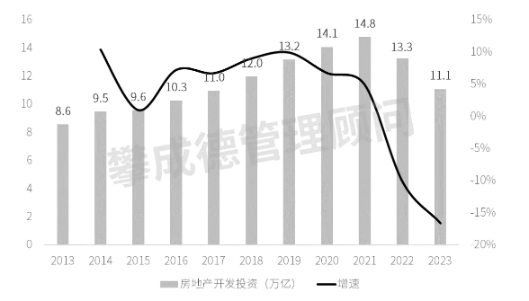 以房建业务为主的企业应该感受更深一点,这两年地产的投资是断崖式下滑,数据上显示(图4),2021年达到顶峰之后就往下走了。