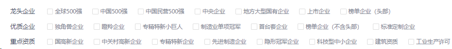 最后则是通过一些概念型的标签进行拓客,比如人工智能、互联网、电子商务、生物科技等,通过这些概念型的标签,找到符合标签的优质认证、榜单企业、高成长企业、企业类型、企业特点、企业规模、科技认定等企业,进行名单筛选后拓客。