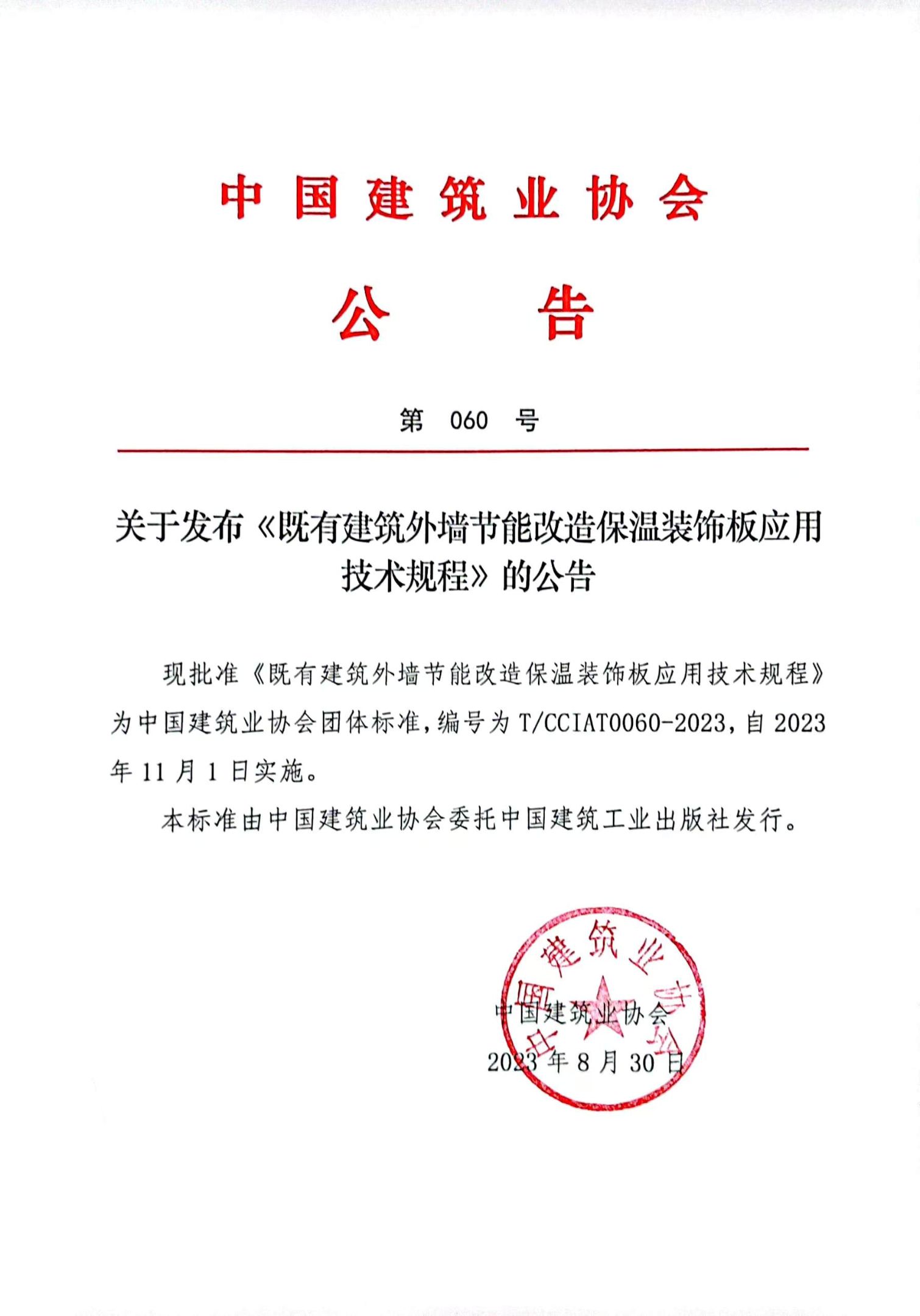 关于发布《既有建筑外墙节能改造保温装饰板应用技术规程》的公告
