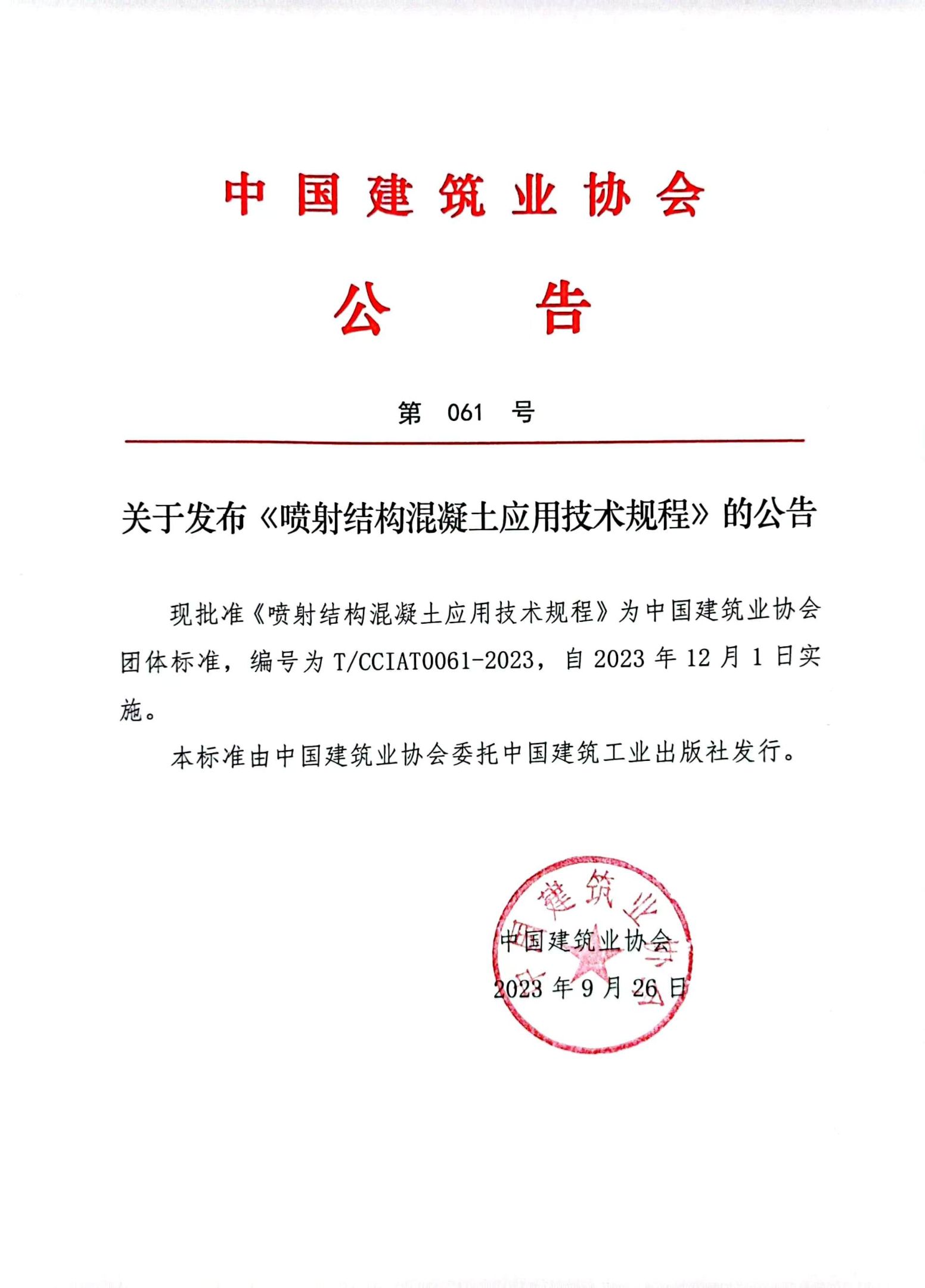 关于发布《喷射结构混凝土应用技术规程》的公告
