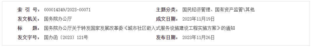 国家发展改革委《城市社区嵌入式服务设施建设工程实施方案》已经国务院同意,现转发给你们,请认真贯彻落实。