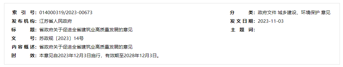 本意见自2023年12月3日施行,有效期至2028年12月3日,《省政府关于促进建筑业改革发展的意见》(苏政发〔2017〕151号)同时废止。