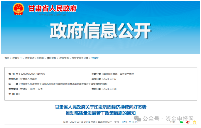 甘肃省人民政府关于印发巩固经济持续向好态势 推动高质量发展若干政策措施的通知