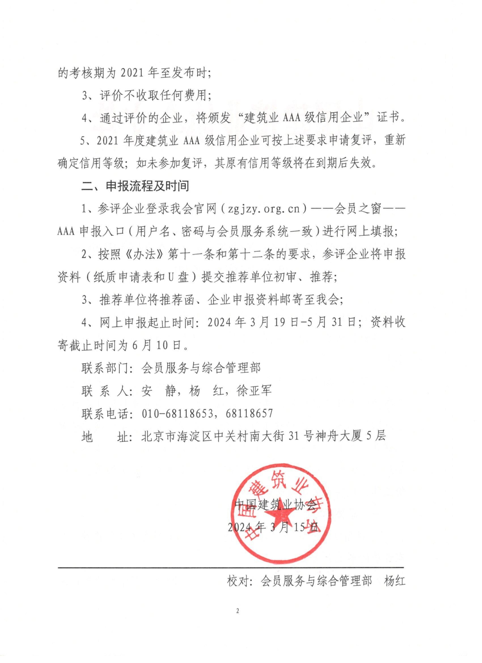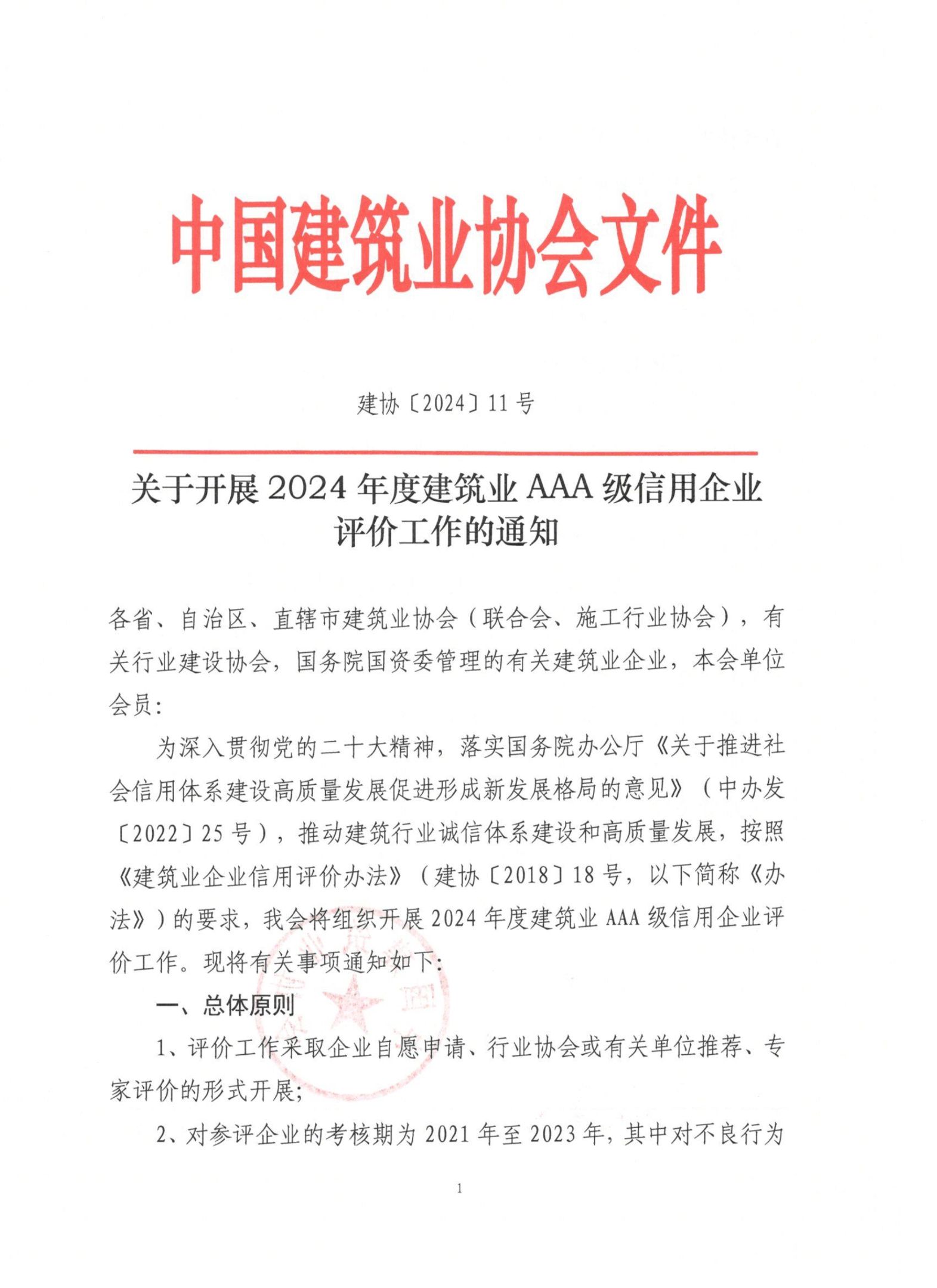 关于开展2024年度建筑业AAA级信用企业评价工作的通知