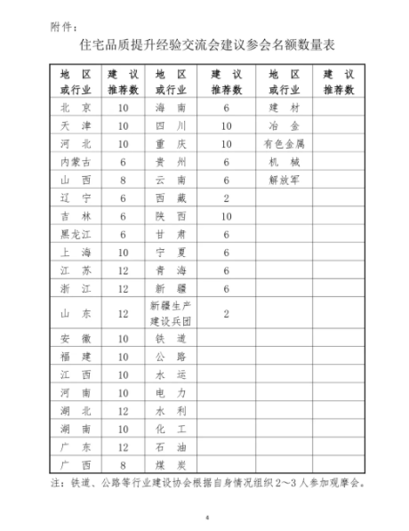 附件:住宅品质提升经验交流会建议参会名额数量表